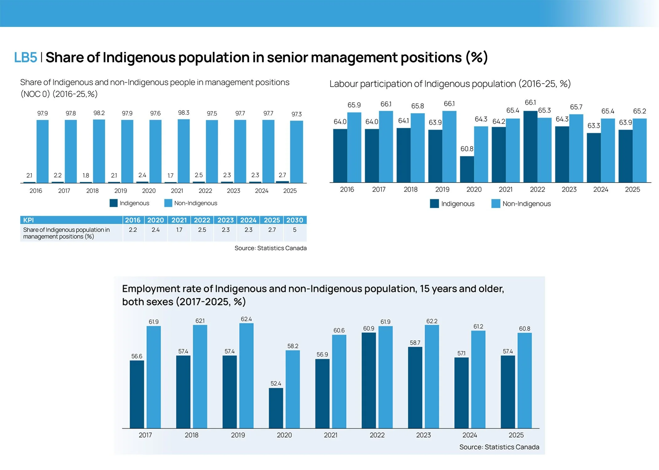 Share of Indigenous population in senior management positions (%)